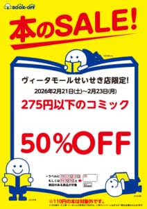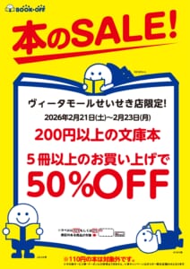 ブックオフヴィータモールせいせき店では2/21~2/23で